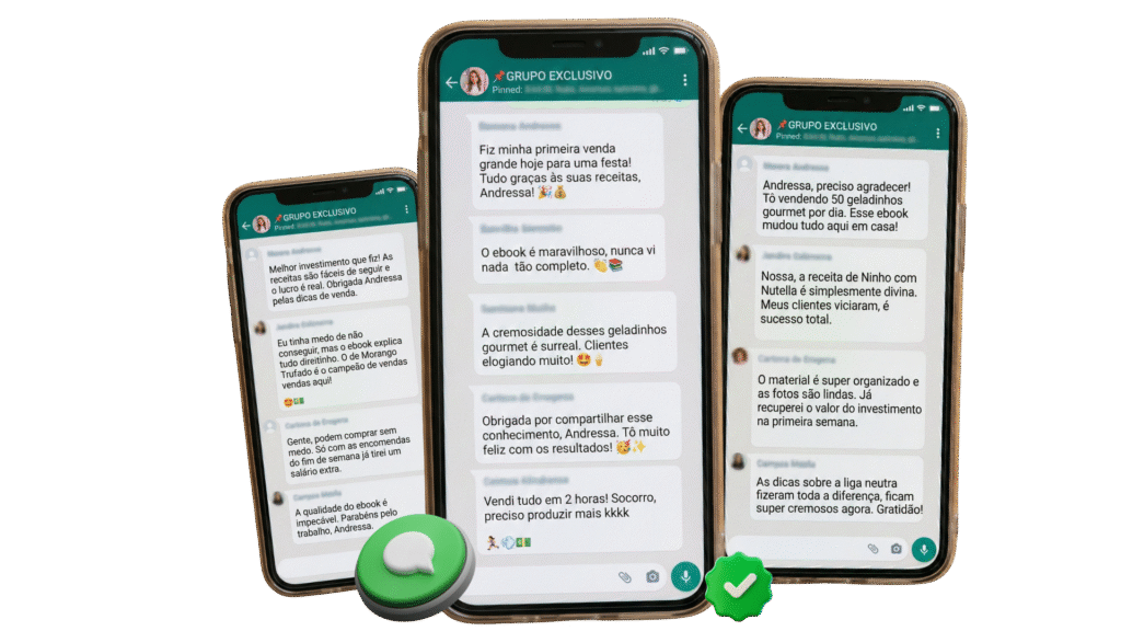 Não são apenas receitas da internet. São as receitas validadas que me fizeram ser a maior influencer de Geladinhos Gourmet do Brasil.